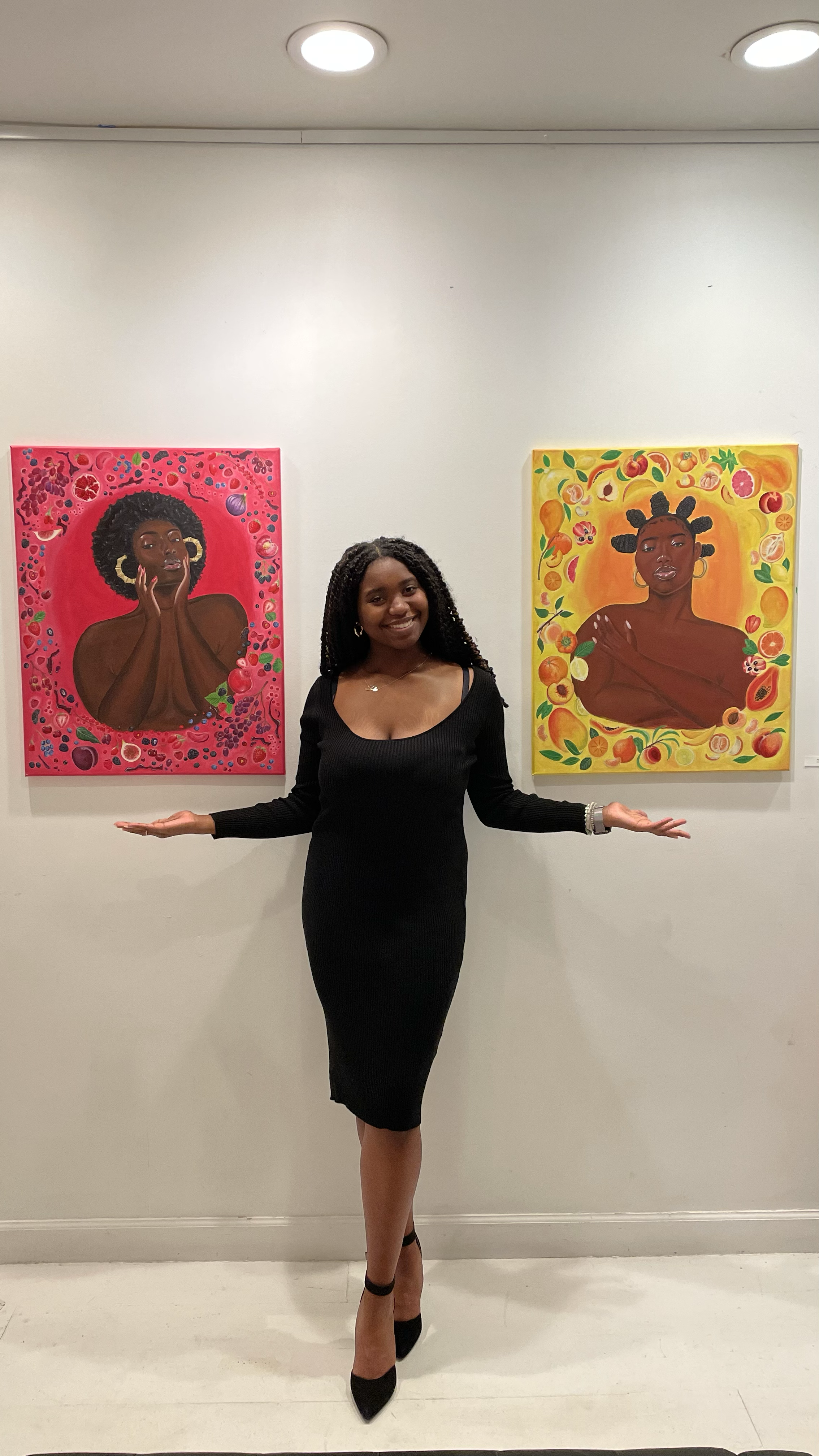 Tallawah, a Jamaican patois word meaning strong, resilient, and not to be underestimated or taken lightly, is exactly the word that describes the Black Women that have greatly impacted Sacha’s life. Inspired by these women, Jamaican and Black culture, and the themes of representation, Sacha created pieces that represent the beauty of Black femininity and expressions of love through the lens of her own experiences. Through the thoughtful curation of her works, she cultivated an environment that inspired conversation and feelings of community, influenced by her visual narratives.