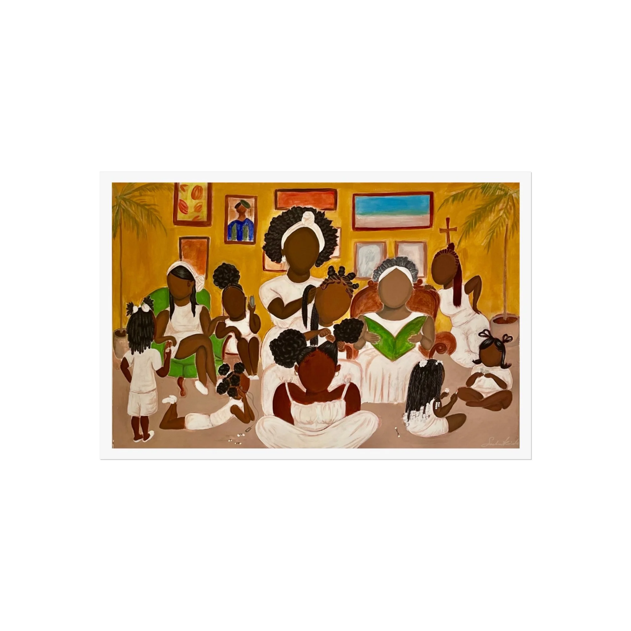 As an artist, I draw inspiration from Black and Jamaican cultures, celebrating the beauty and diversity of who we are and our avenues of expression. I am constantly inspired by everything from our hair, clothes, and foods, to the ways we express love to one another. Each piece features my original artwork, transforming everyday essentials into statement pieces that celebrate the beauty of Blackness. My bags are vibrant and durable. In the Sach Shop, we also offer prints, postcards, and greeting cards that have an extra sense of warmth.